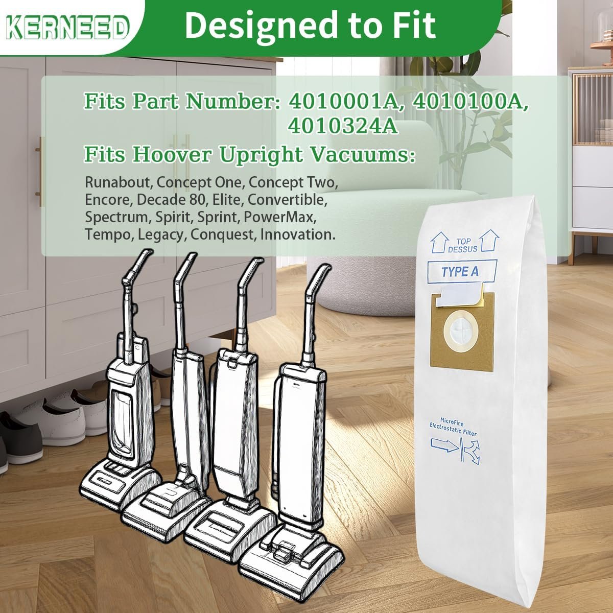 • : Designed to fit Convertible, Decade 80, Concept One, Concept Two, Elite, Legacy, PowerMax, Encore, Runabout, Spectrum, Spirit, Sprint, Tempo, Conquest, Innovation upright vacuums. Fits Part Number: 4010001A. (!!Please check your model carefully)