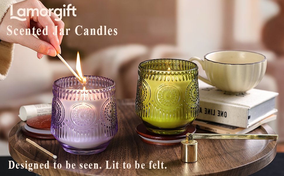 - 【Natural Soy Wax Candle for a Clean, Even Burn】Made with 100% soy wax, these jar candles burn cleaner and slower than paraffin alternatives. Enjoy minimal soot, a steady flame, and consistent fragrance release from the first light to the last.