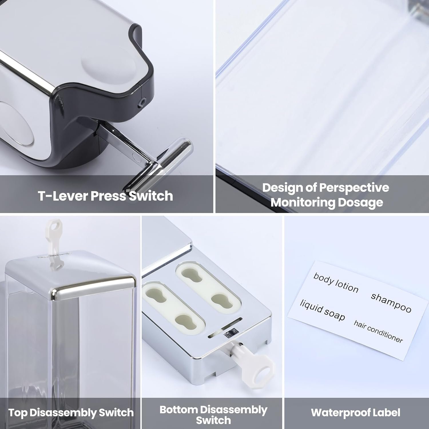 STURDINESS & MULTIFUNCTION: pressure casting t-bar lever soap dispenser makes it easy to dispense,for liquid goods,BODY WASH, SHAMPOO,HAIR CONDITIONER,BODY MILKETC.