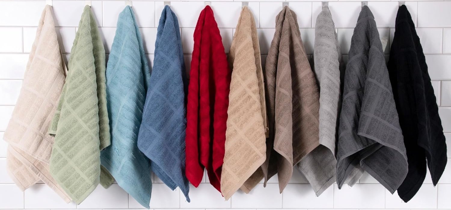 - 100% COMBED COTTON. Extra soft pre-washed, yarn-dyed cotton with finished stitched hems. Made of highly absorbent soft cotton that makes them great for drying dishes and glassware and cleaning up spills around the kitchen