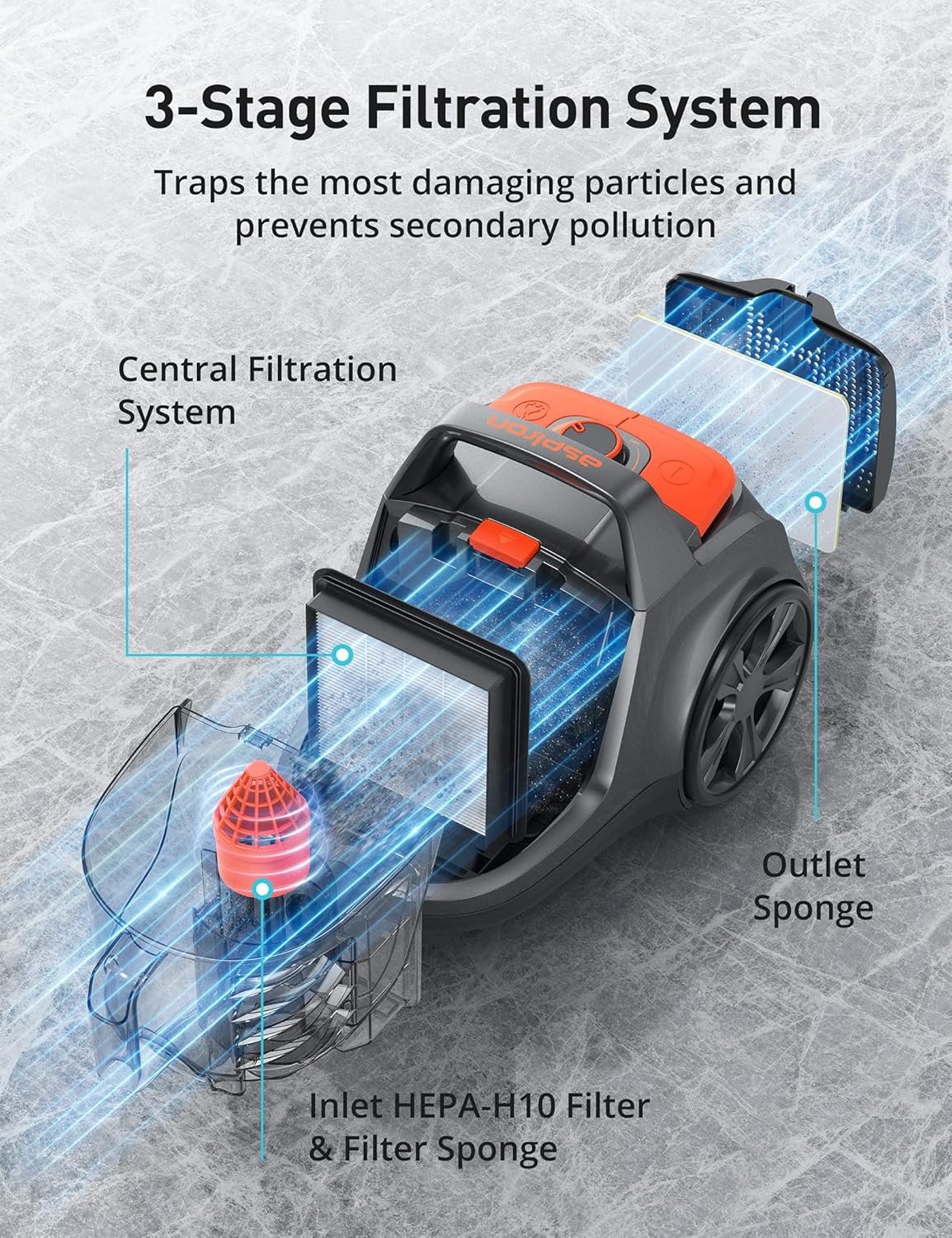 Powerful Multipurpose Cleaning: The efficient brushless motor of the Aspiron canister vacuum cleaner generates over 30Kpa of strong suction for vacuuming dust, dirt, pet hair, and more