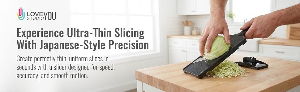 - Time-Saving and Multifunctional Japanese-style Slicer: Achieve ultra-thin 1mm slices effortlessly with LOVE YOU Studio’s Japanese-style cabbage slicer, perfect for shredded cabbage, plantain chips, and more. This multipurpose slicer handles vegetables, hard fruits, cheese, chocolate, and beyond, delivering professional-grade results quickly. Save time and enhance prep efficiency with a slicer designed for precision and ease.