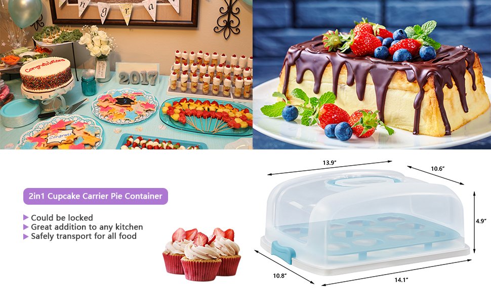 TOTAL SIZE IS-14.1 x 10.8 x 4.9 inches, Fit for storing 12 cupcakes or 1 large cake/pies.