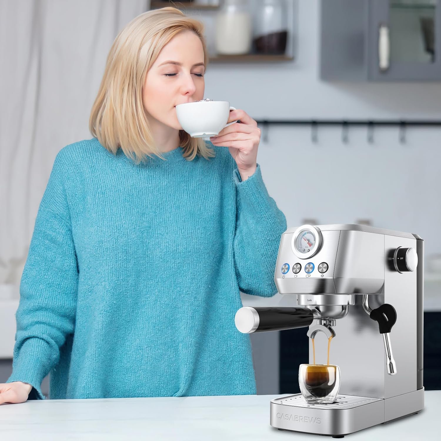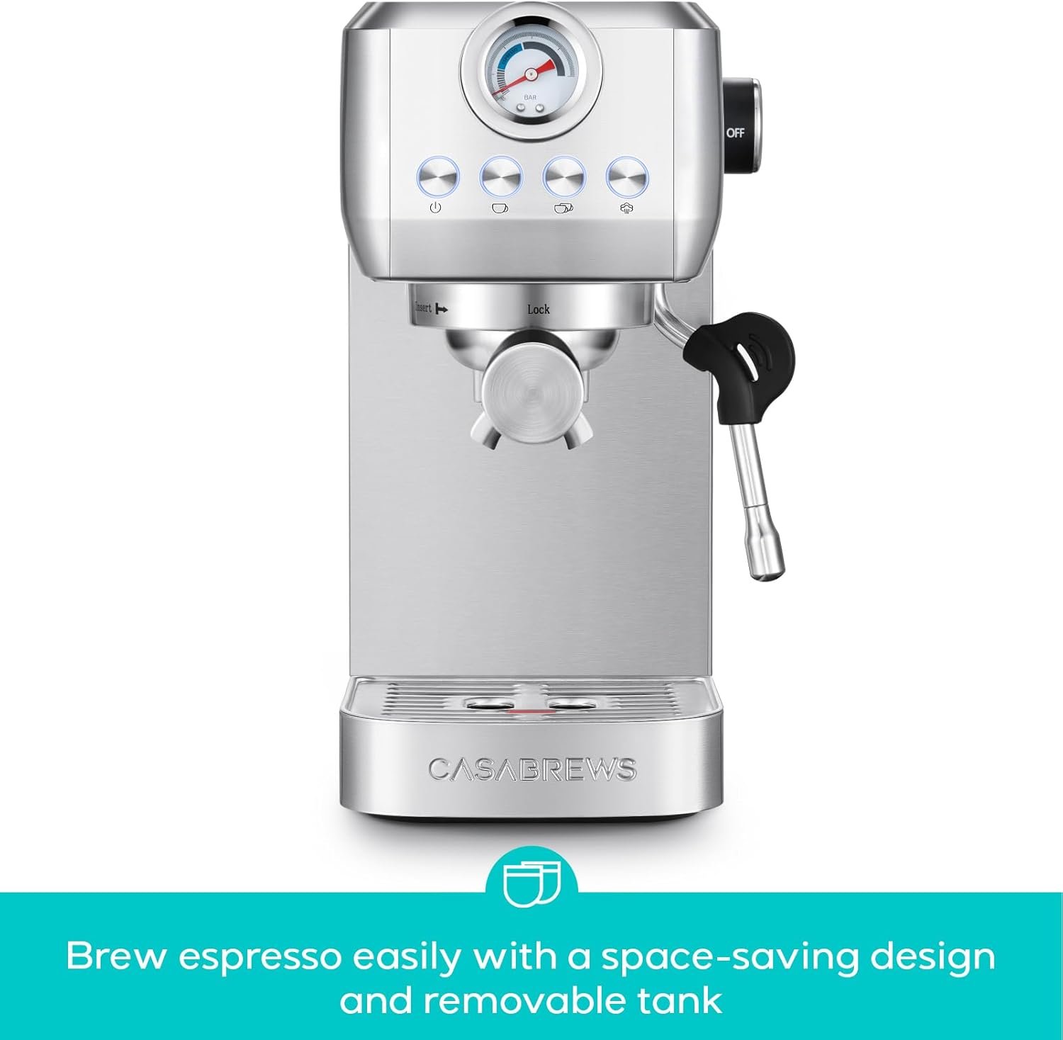 Make Your Favorite Espresso Coffee At Home: The CASABREWS espresso machine allows you to prepare all your favorite espresso-based coffees. You can enjoy a barista-brewed latte, cappuccino or macchiato at home. Stainless steel appearance, stylish and durable, ideal for any size kitchen.