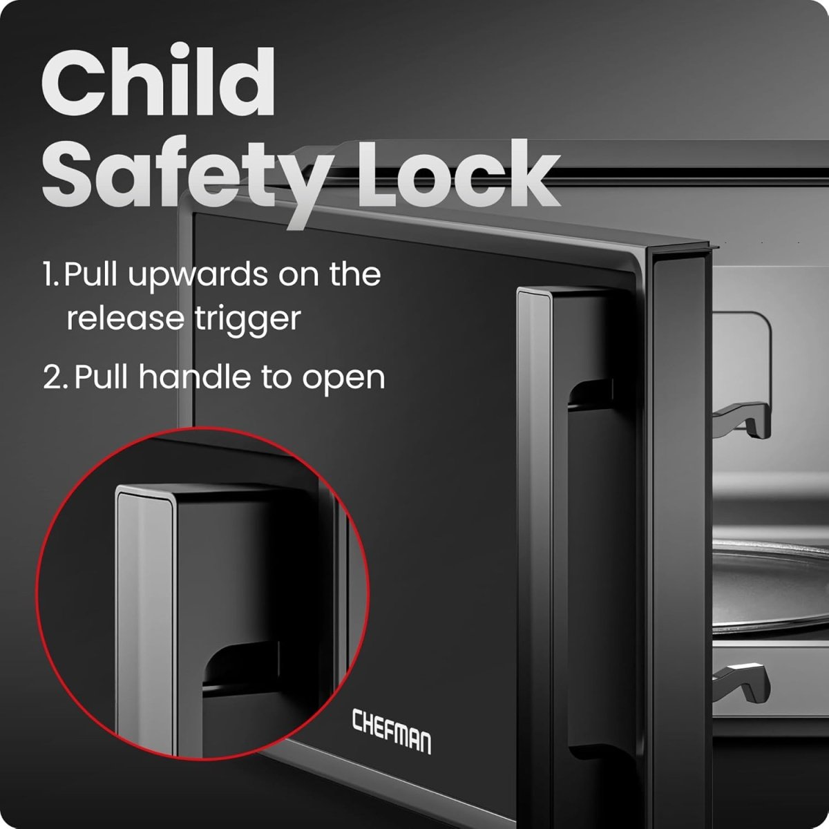 SAFETY FIRST: The built-in child safety lock on the handle ensures the door doesn’t open accidentally, and you can disable the microwave control panel using the Lock Mode.