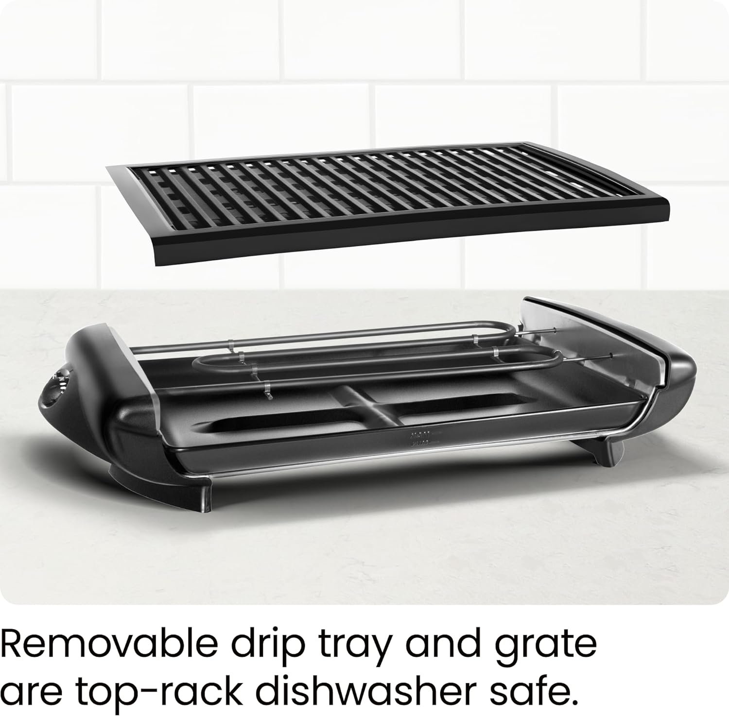 EASY TO CLEAN: Non-stick surface ensures meals will slide off the grill and onto your plate with ease. Disassembles for easy cleaning; grill top and non-stick water tray are removable and dishwasher safe so cleanup is as easy as grilling!