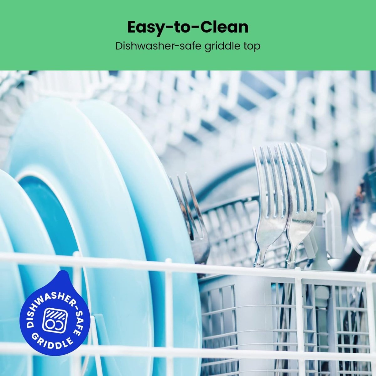 EASY CLEANING: The griddle grill cook top is fully immersible and dishwasher safe – simply remove the temperature control prior to washing.