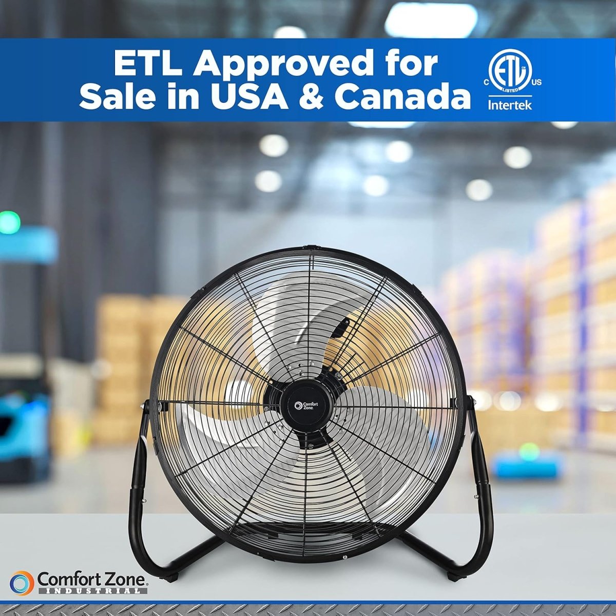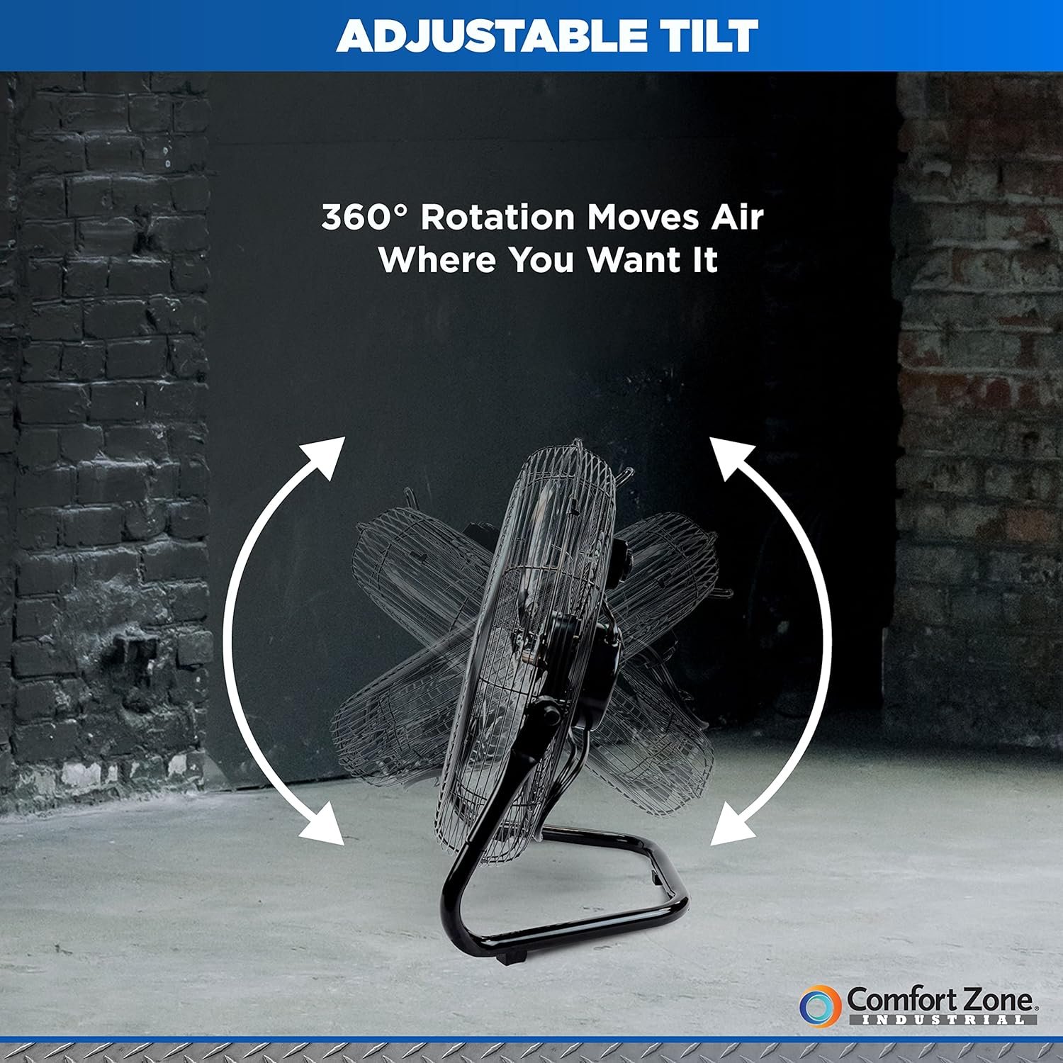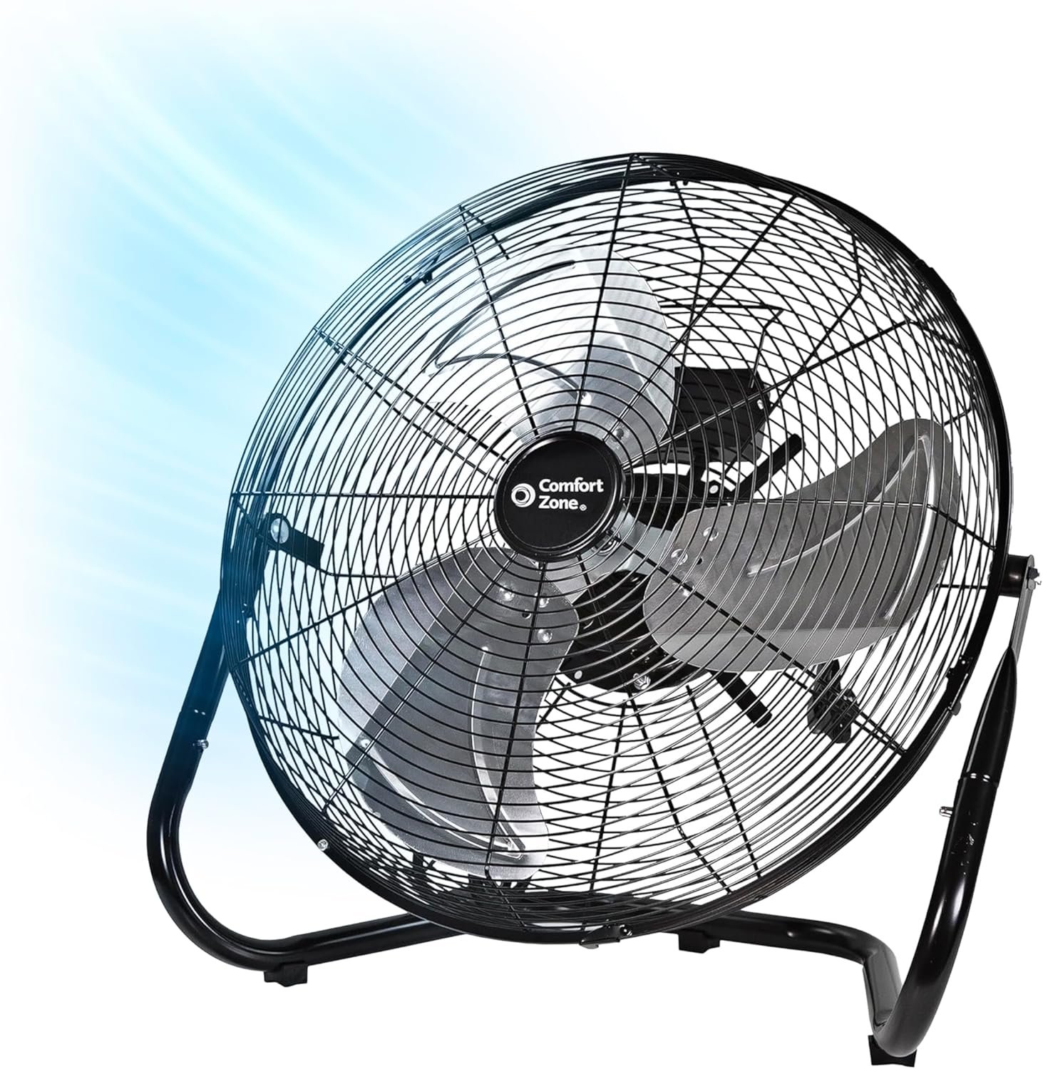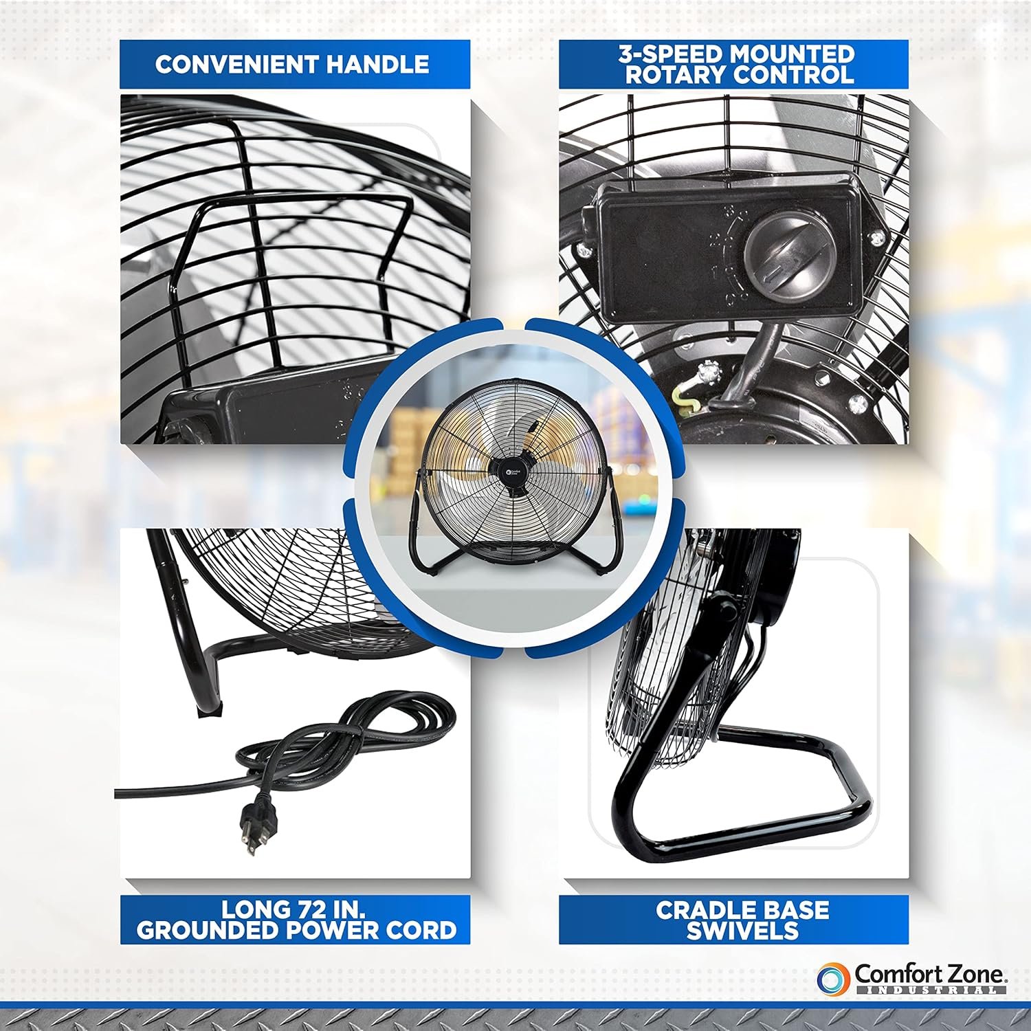Powerful and Versatile Floor Fan – The Comfort Zone 3-speed high-velocity fan will help you keep large spaces comfortable to live and work in when it’s hot and humid outside. Great for everything from at-home use to public spaces like offices and restaurants, this 3-speed floor fan is easy to place anywhere you need it. Variable 3-Speed Output – The fan offers three different speed settings, making it easy to control the strength of the air output. Set it to low for a gentle breeze or shift it to high to get the air moving or give yourself a quick cool-down blast. A rotary control switch allows you to adjust the speed with a simple turn in either direction. Durable and Safe – The blades, stand and grill of the quiet office fan are all made from durable metal, which allows it to stand up to daily use for season after season. The sturdy design helps to ensure vibration-free performance, minimizing noise and distractions, and the tough metal grill helps to protect curious pets and children from the moving blades while it is in use. Directional Airflow – The quiet portable fan tilts 360 degrees, allowing you to direct the airflow exactly where you want it to go. This makes it a smart option for a wide variety of applications. Versatile Portable Design – A sturdy handle is built into the high-velocity metal fan to allow you to easily carry it from one area to another. This convenient design makes it a snap to move in and out of storage as the seasons change.