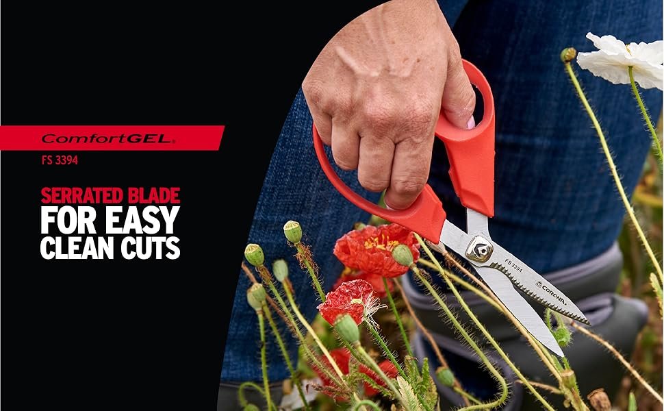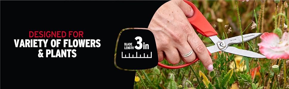 - SERRATED BLADES are designed for cutting and deadheading flowers such as roses and other plants