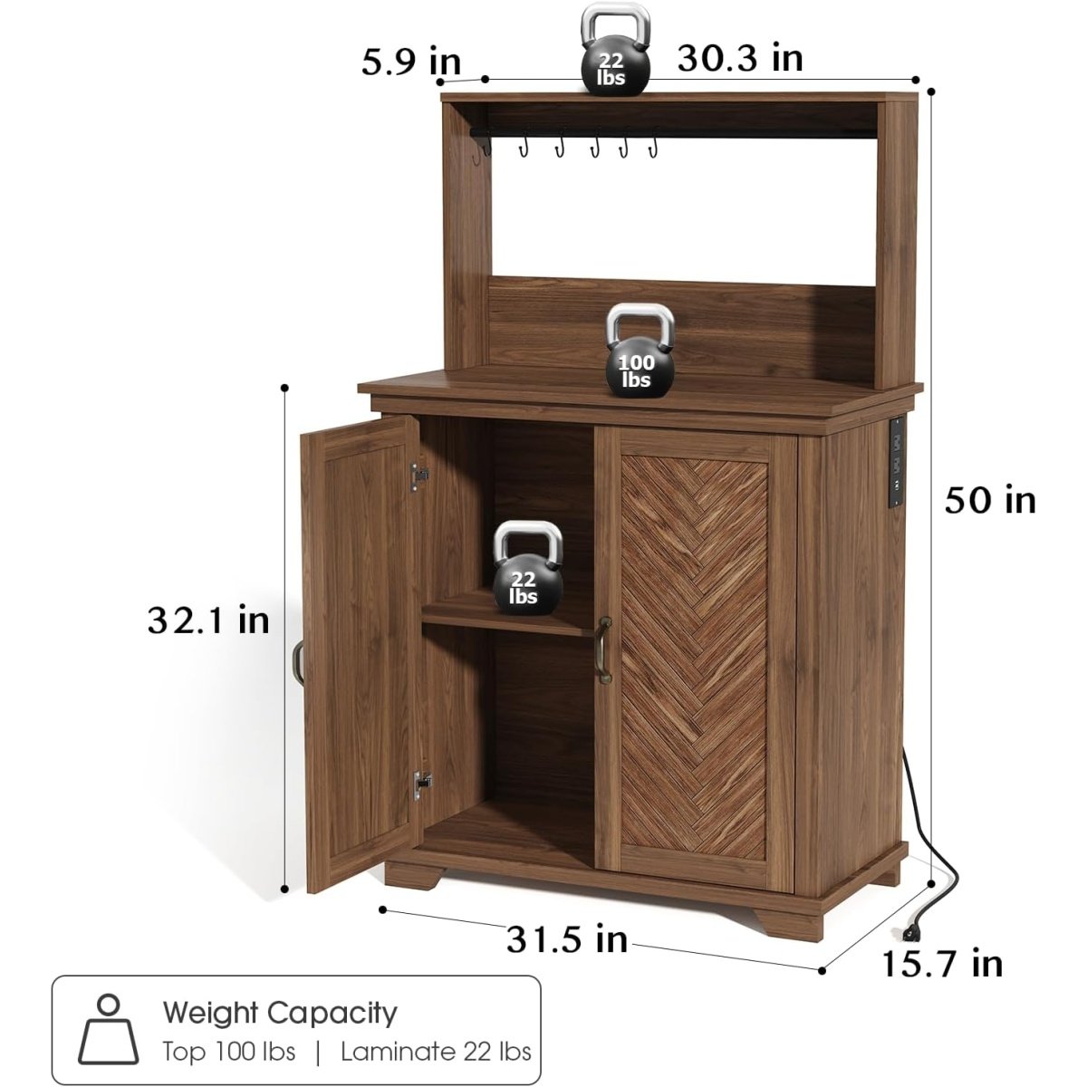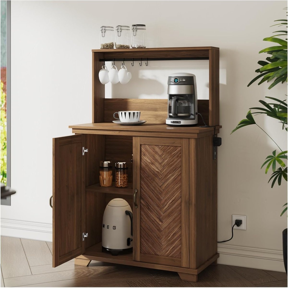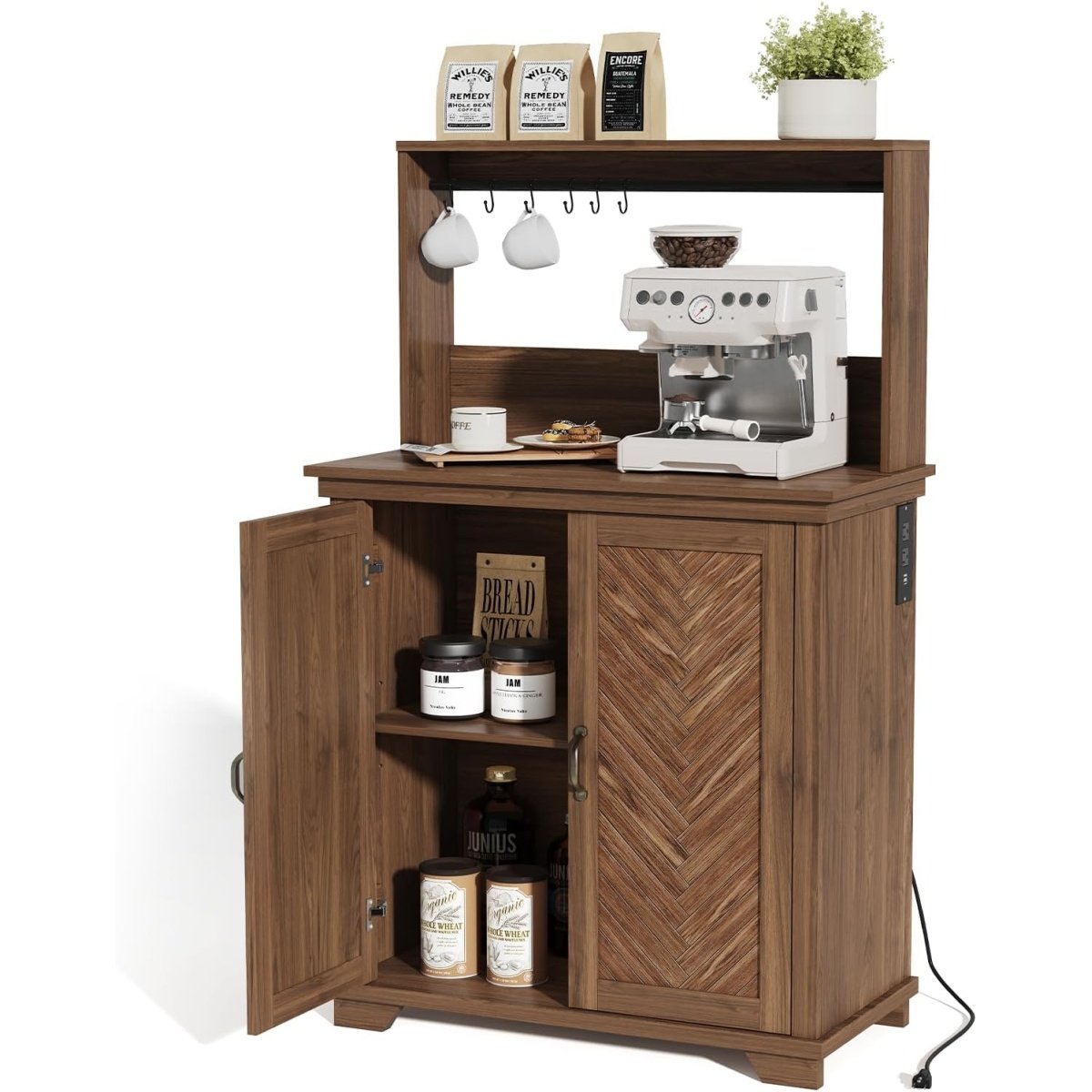 Kitchen Cabinet with Charging Station:Our coffee bar buffet cabinet comes equipped with 2 AC outlets and 2 USB ports, ensuring your power needs are effortlessly met. This allows you to conveniently place small appliances such as a coffee machine, toaster, or ice maker on the coffee bar table. Additionally, it’s perfect for setting up speakers, making it ideal for enjoying relaxing moments with family and friends over coffee while listening to music