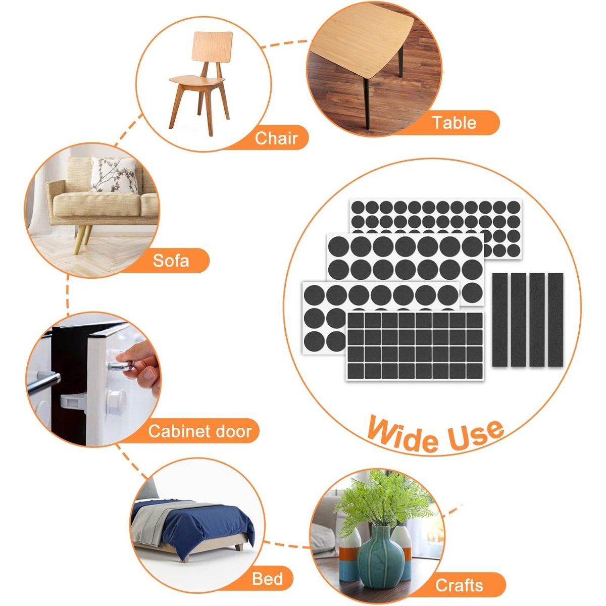 ❤️STOP SCRATCHING YOUR FLOORS❤️ Place our felt furniture pads on the legs of your furniture to avoid scratching or scuffing your beautiful wooden, laminate or tiled floors. And you never have to hear that annoying scraping noise again. We suggest that the furniture is lifted instead of being slid on the floor in order to prevent the furniture pads from coming off.