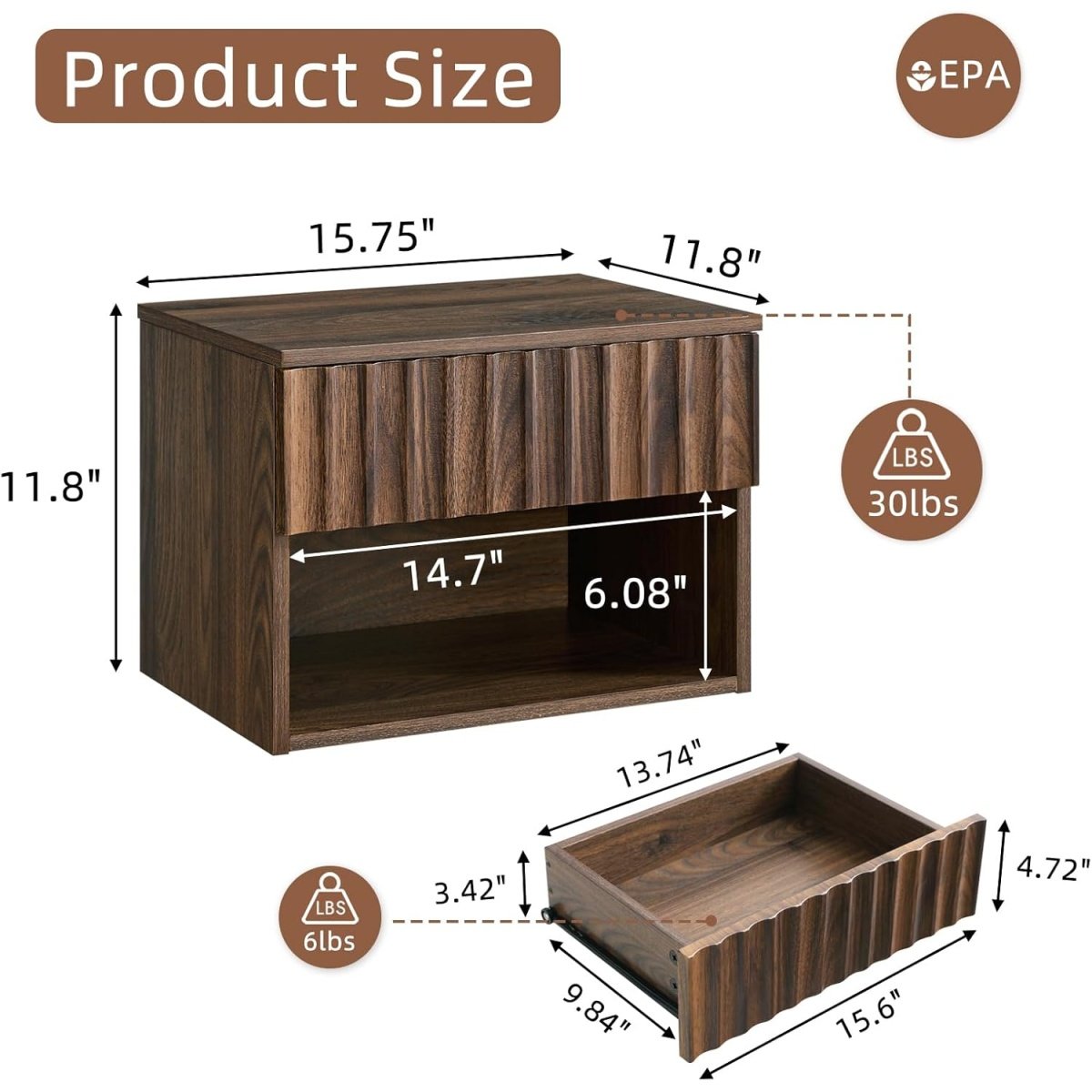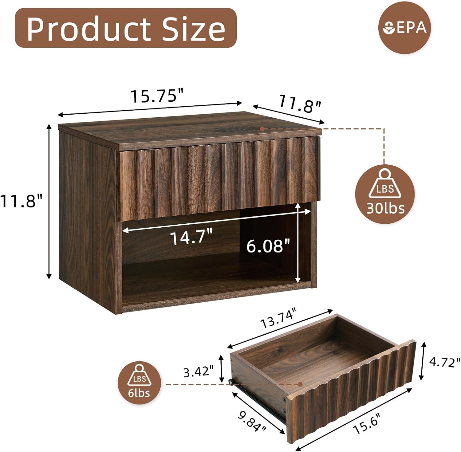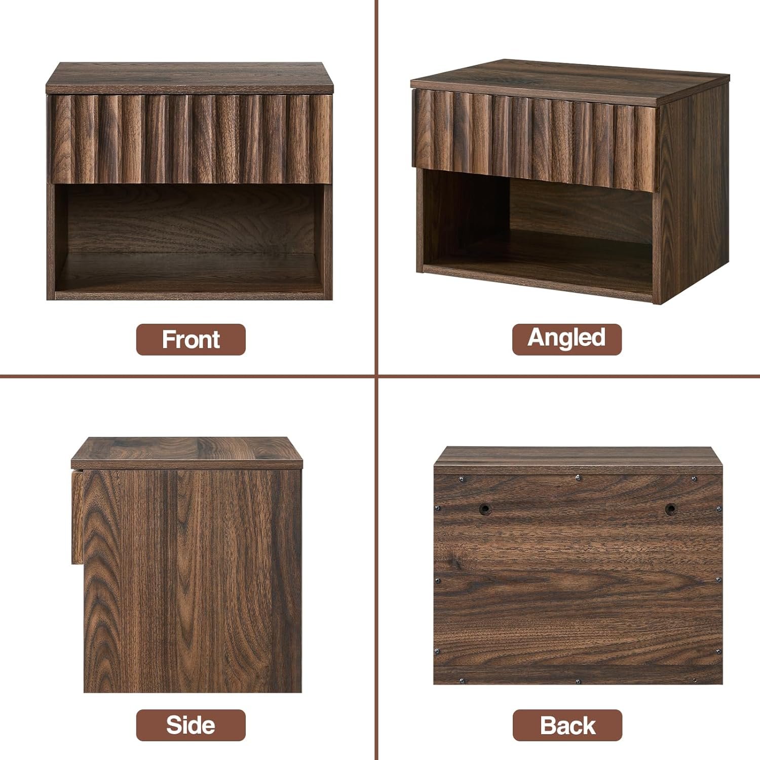 A Harmony of Sophistication and Contemporary Flair: Our nightstand elegantly merges timeless wood craftsmanship with a chic wave pattern, finished in Walnut. It’s a versatile piece that marries classic charm with modern aesthetics, serving both practicality and visual appeal