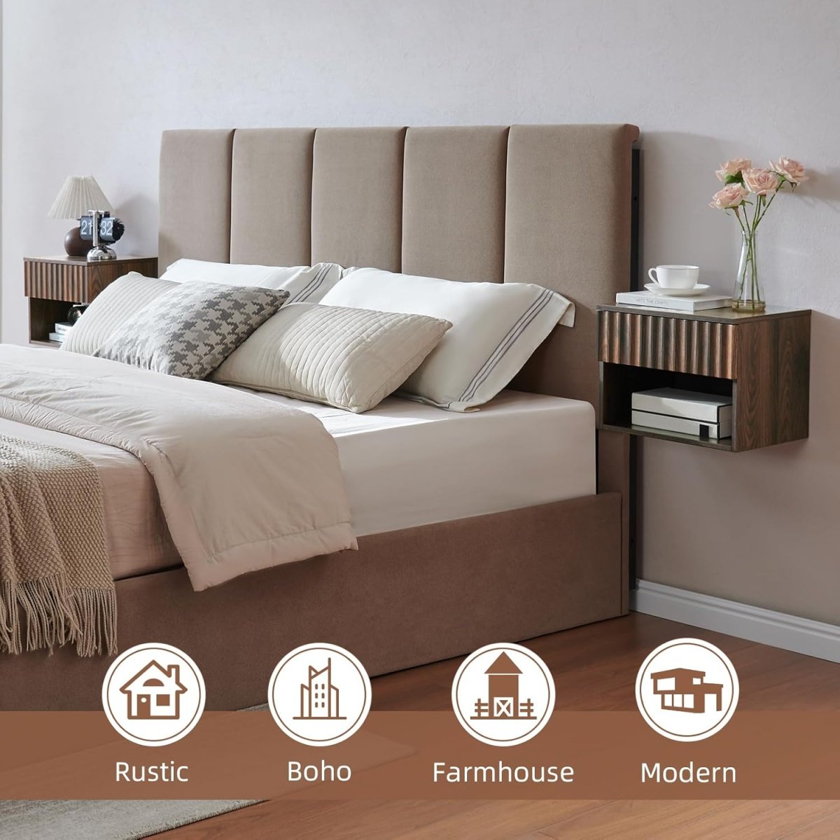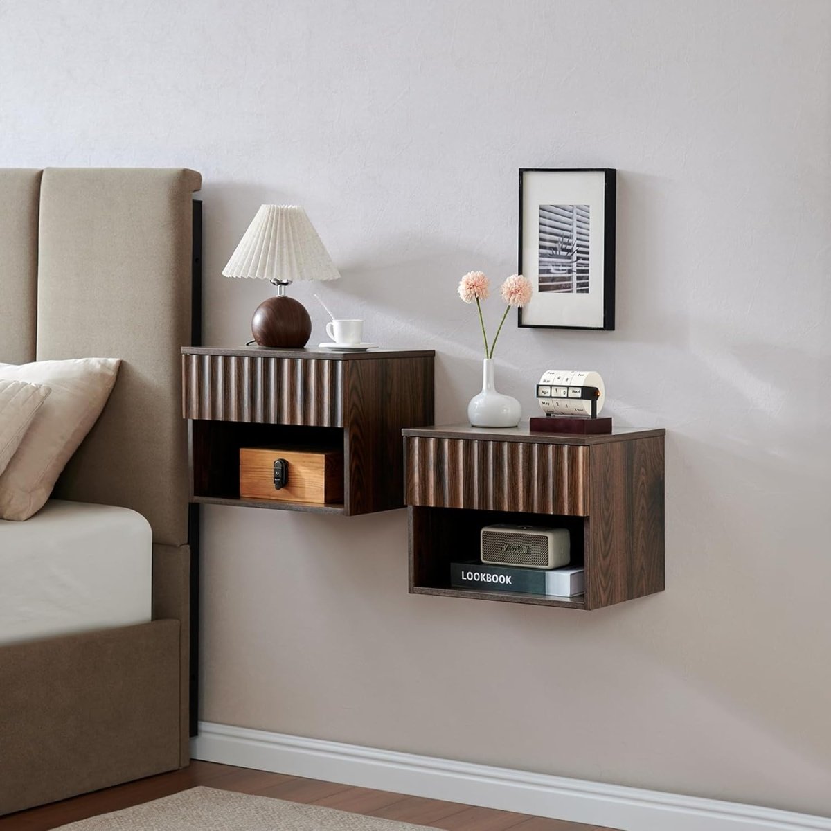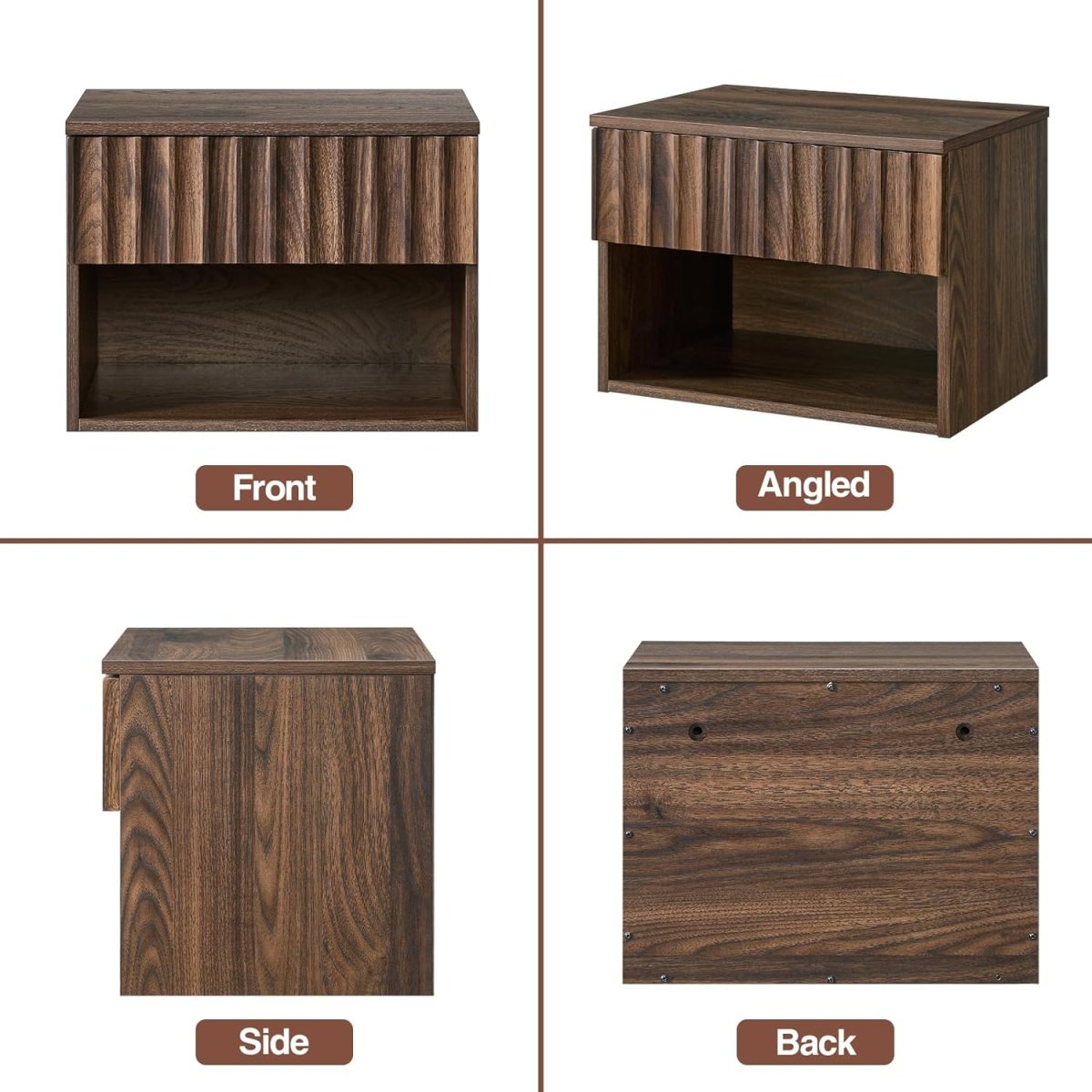 A Harmony of Sophistication and Contemporary Flair: Our nightstand elegantly merges timeless wood craftsmanship with a chic wave pattern, finished in Walnut. It’s a versatile piece that marries classic charm with modern aesthetics, serving both practicality and visual appeal