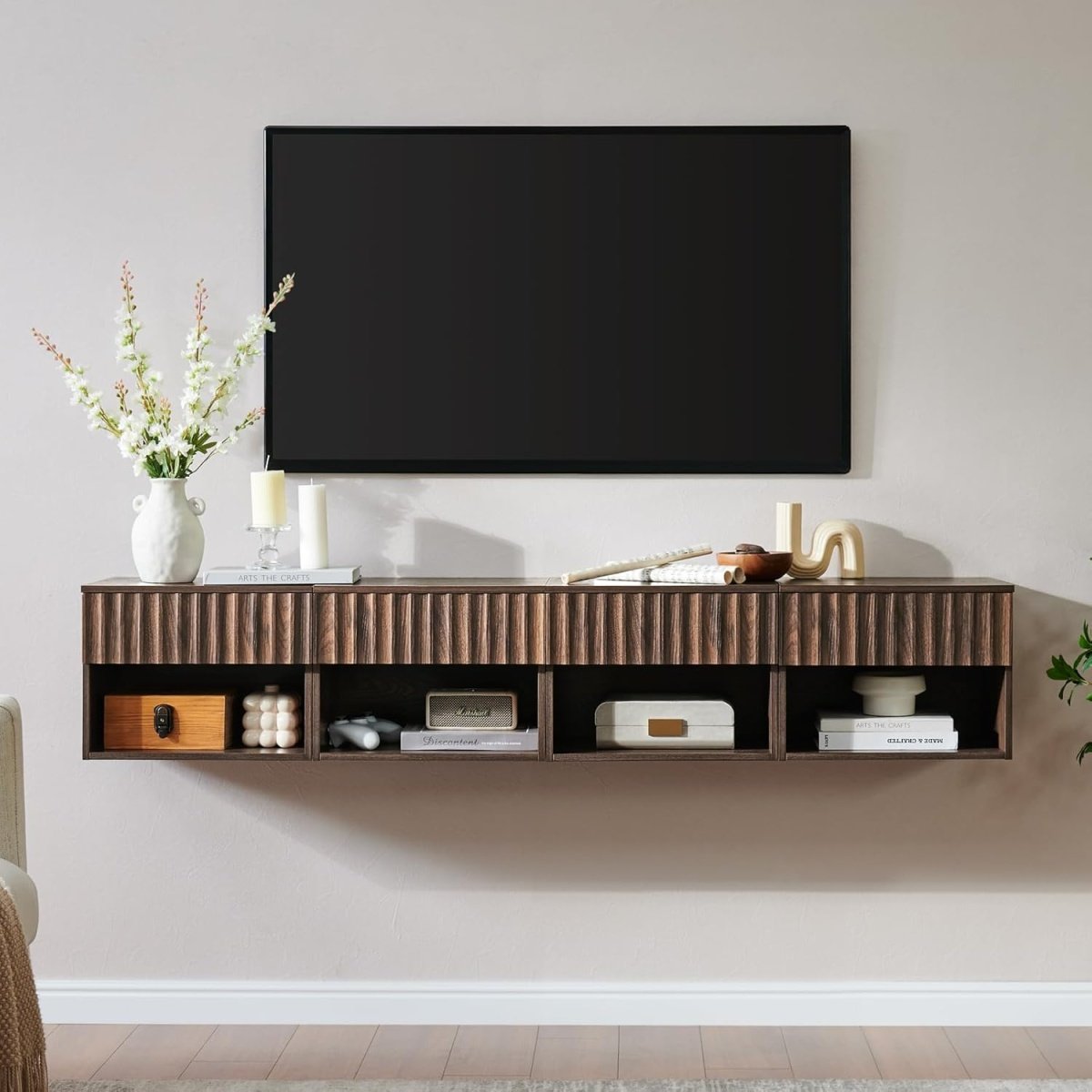 Elegant Storage Meets Display: Elevate your study, entryway, or living area with a wall shelf that’s as stylish as it is practical. Showcasing books, mugs, picture frames, and plants, it keeps you organized while adding a decorative touch. Its modular design transforms it into a unique TV stand, enhancing your home’s aesthetic effortlessly