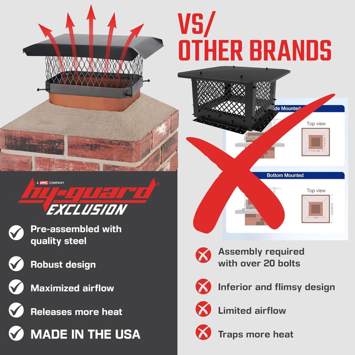 Effective Chimney Protection – Safeguard the top of your chimney from birds, debris, rain, snow, certain downward drafts, and potential fire hazards with the HY-GUARD Galvanized Steel Chimney Cover.