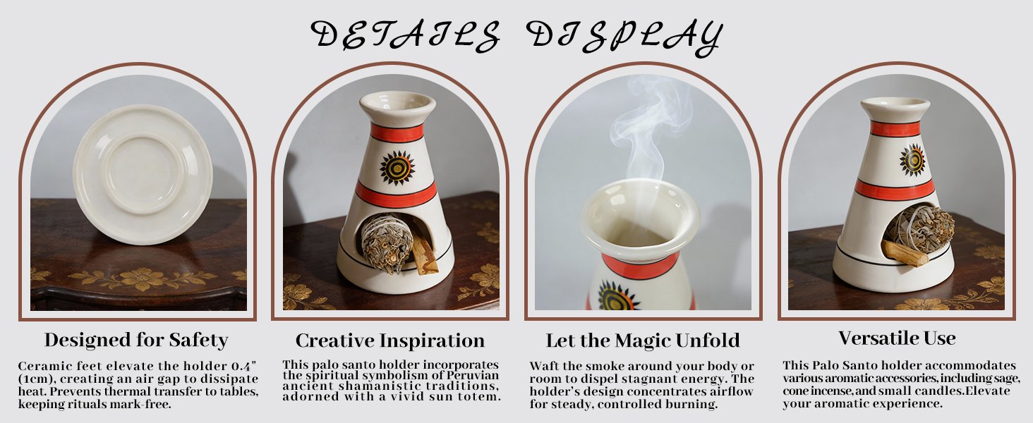 • Peruvian Shaman Sun Totem Design & Spacious Structure:**Infused with the spiritual symbolism of Peru’s ancient shamanic traditions, our tent-shaped holder features a vivid sun totem. Its iconic silhouette blends earthy ritual charm with ample internal space—ideal for burning palo santo sticks, sage bundles, or incense cones during smudging, meditation, or spiritual ceremonies, while the totem adds a sacred, culturally rich touch to your personal sanctuary.