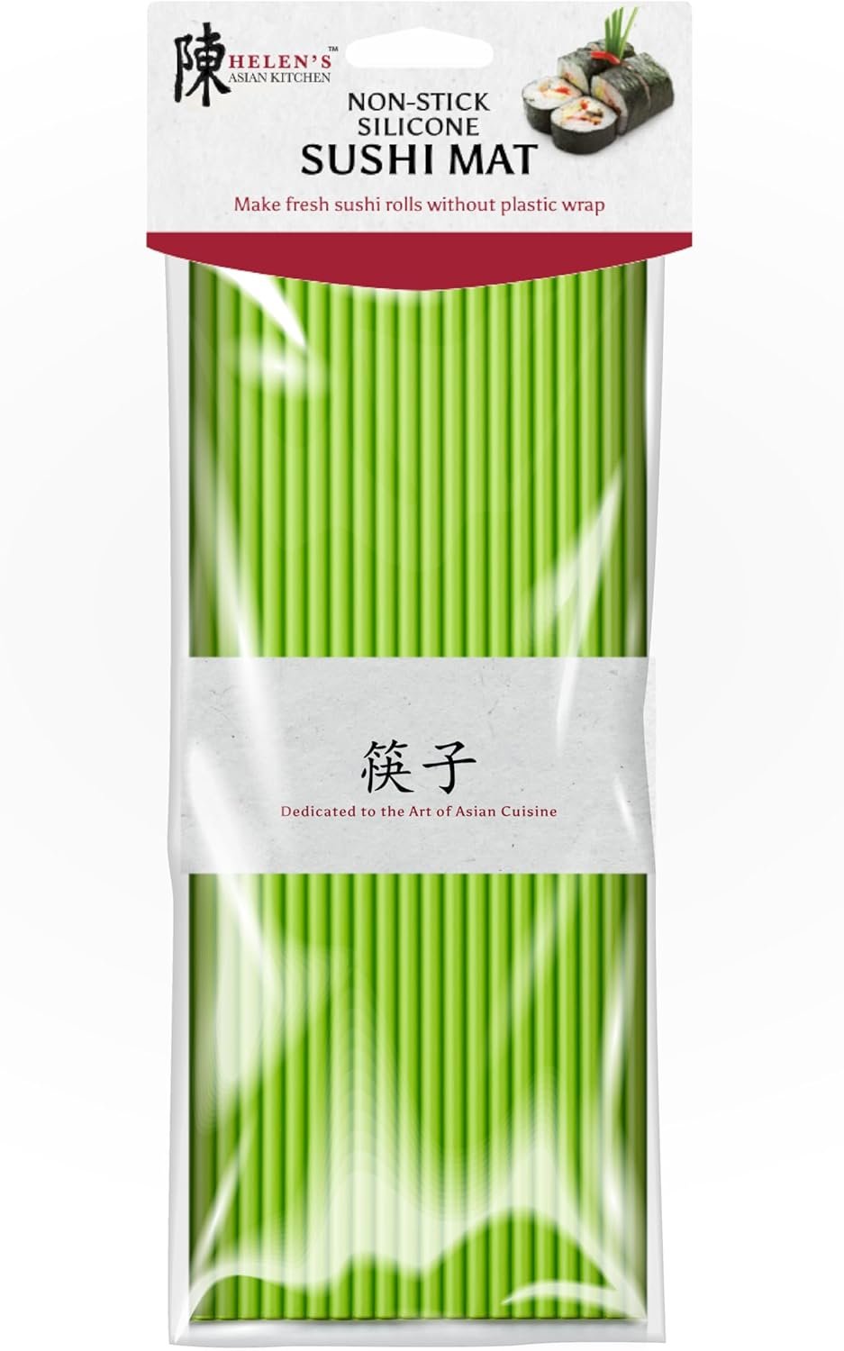 - Helen’s Asian Kitchen’s non-stick Silicone Sushi Rolling Mat requires no plastic wrap to properly form, shape, and release hand rolled sushi