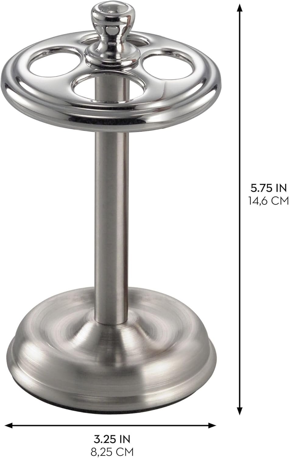 - NON-SKID BASE: The non-skid and non-absorbent foam padding on the bottom of the metal toothbrush stand prevents sliding on wet surfaces.
