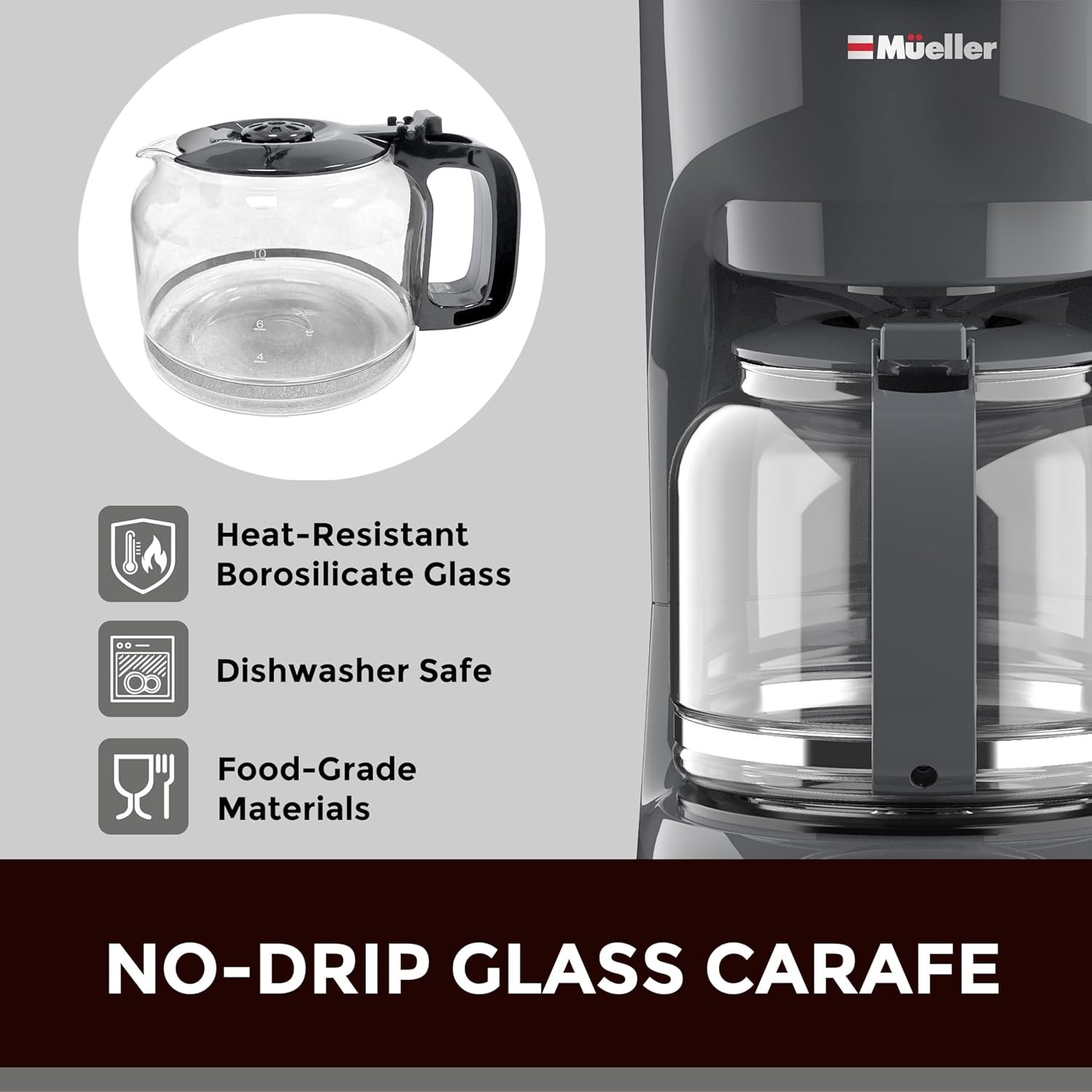 Generous Capacity & Durable Design: Glass carafe with 60oz capacity, this allows you to brew a large amount of coffee up to 12 full cups, or simply choose 2 or 4 at a time. It has an easy-grip handle for comfortable, drip-free pouring. The dishwasher safe carafe coffee pot is made of high-quality, non-porous borosilicate glass, which won’t absorb odors, while its superb heat-resistance will keep your coffee hotter for Ionger.
