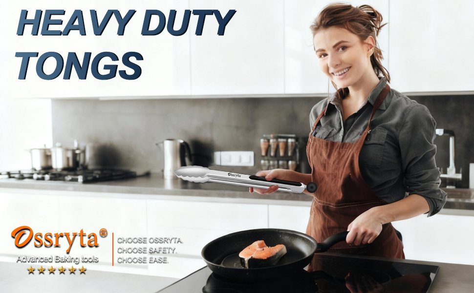 - MULTI-SIZE FOR EVERY KITCHEN TASK – Ossryta 3-piece tong set! The long 12″ tongs safely handle deep frying and grill flipping, while the 9″ version perfectly serves salads and pasta. For delicate tasks like plating desserts or grabbing toast, the compact 7″ tongs offer precision control. All sizes feature the same professional 600°F heat resistance – whether you’re searing steaks or tossing salads, you’re covered. Perfect as cooking tongs, grill tools, or for retrieving food from boiling water