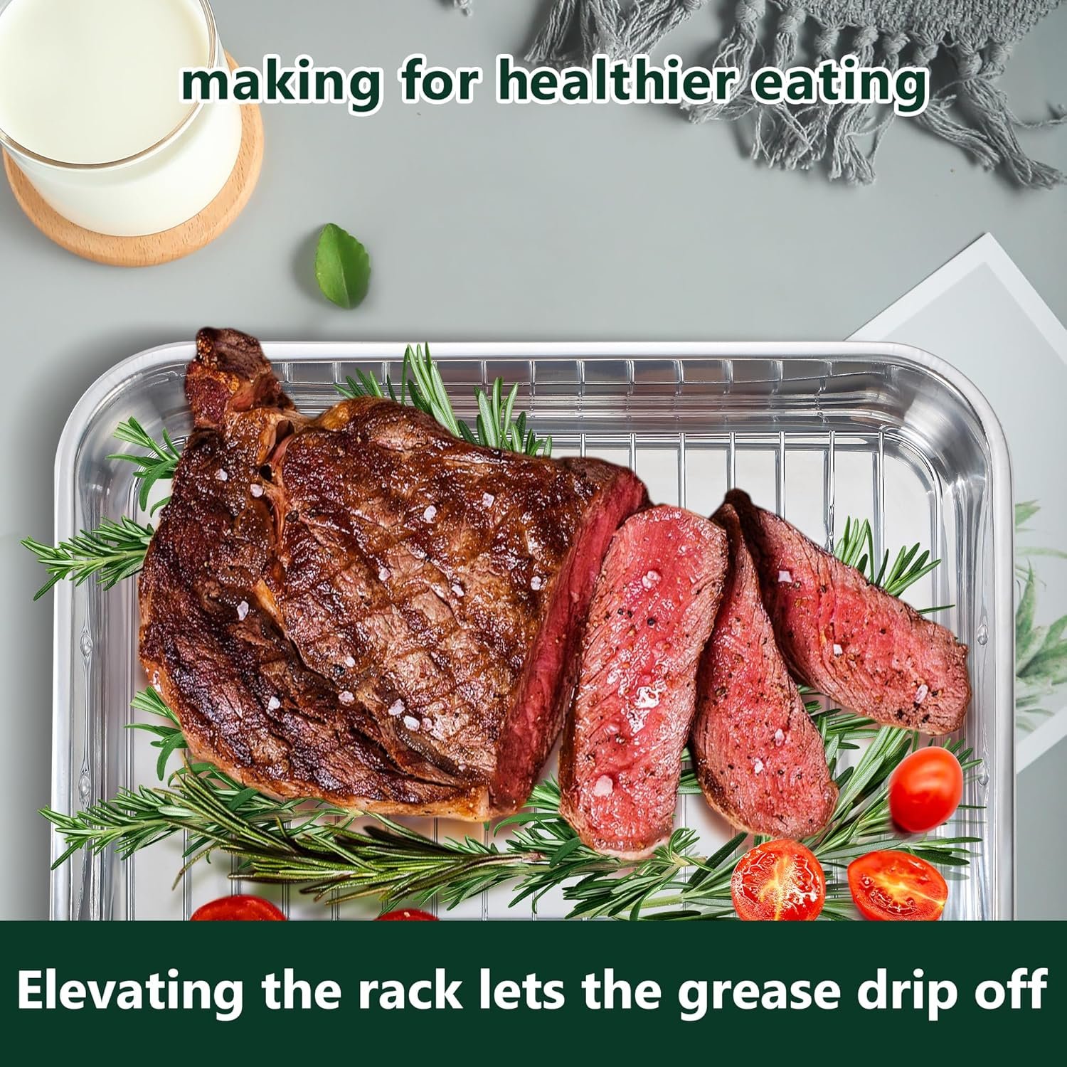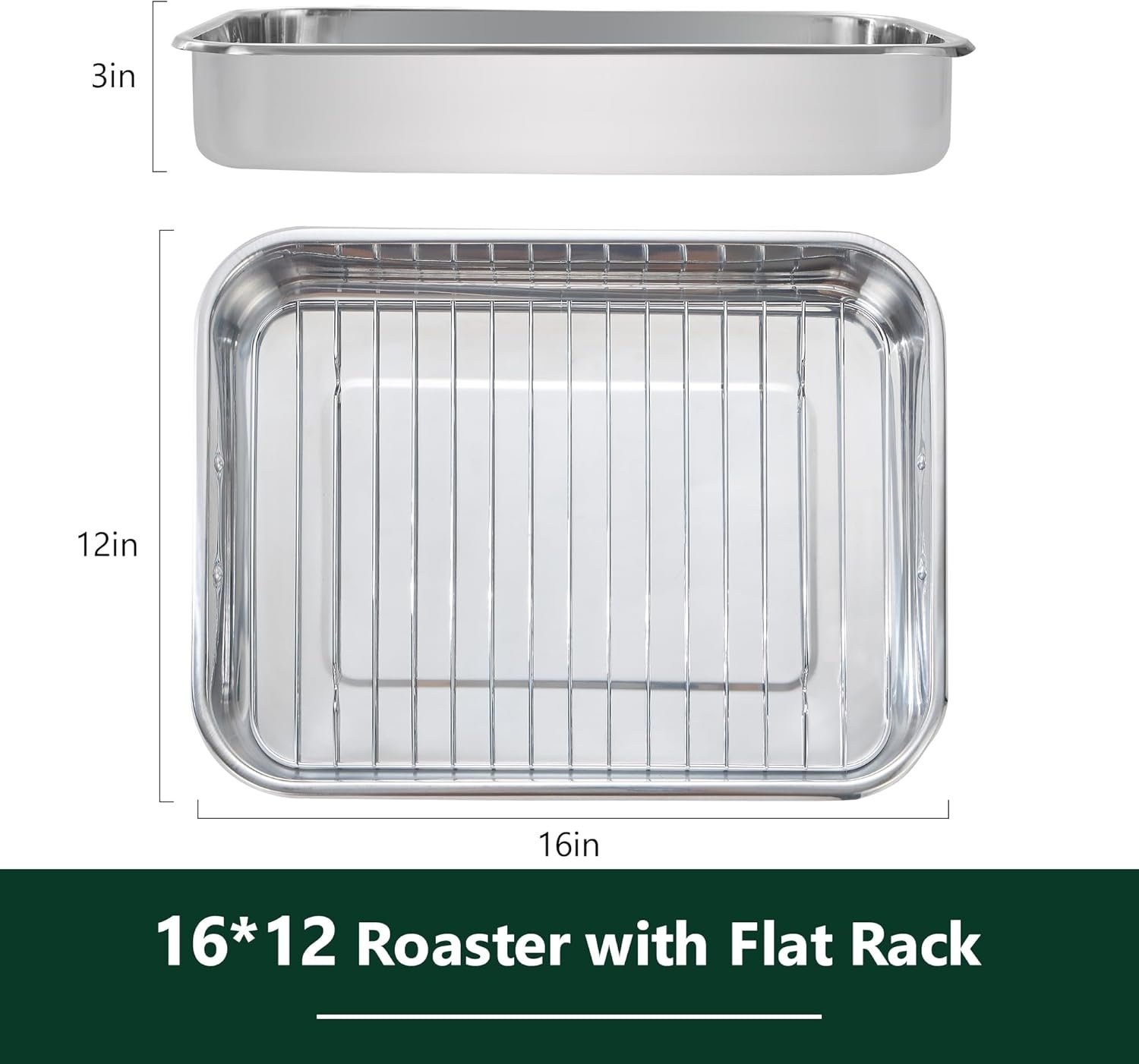 【Healthy Cooking】The roasting pan with rack features a no-coating design, avoiding the issues of coating peeling off at high temperatures like traditional roasting pans. Cook healthy, delicious meals without worries, providing a safer food option for your family.
