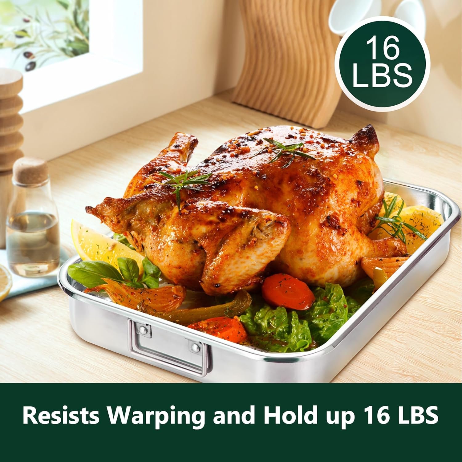 【Versatile Use for Cooking a Full Meal】This stainless steel roasting pan isn’t just for turkey—it’s perfect for roasting meats, vegetables, casseroles, and baked dishes. Whether it’s a family dinner, holiday baking, or everyday cooking, it meets all your diverse culinary needs, helping you create delicious meals with ease.