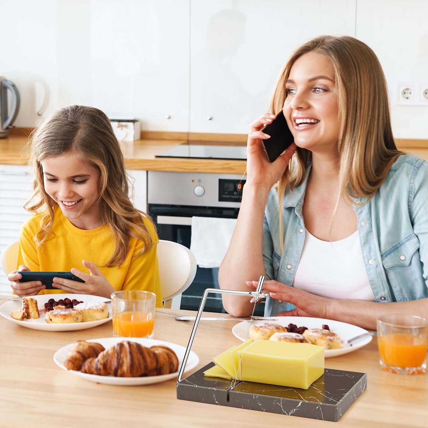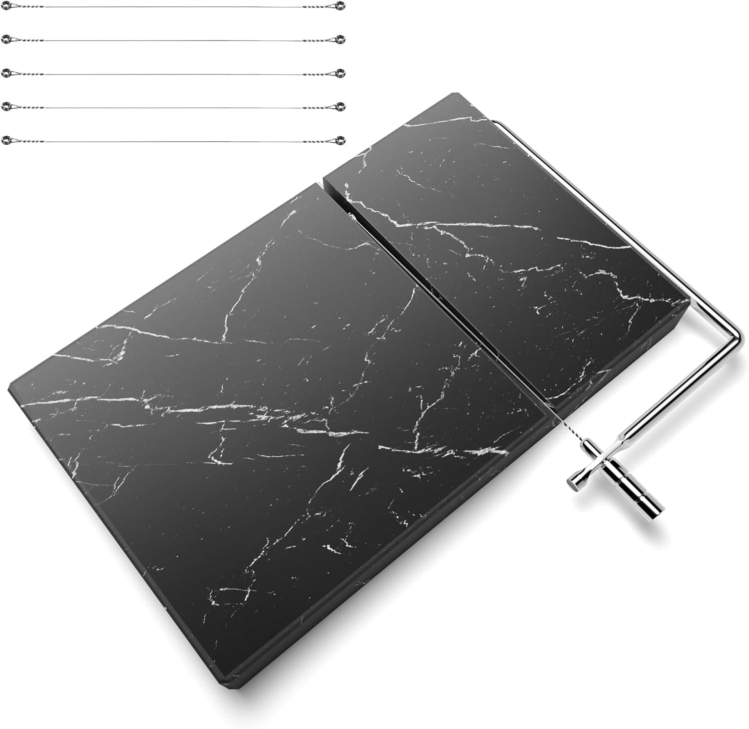 VERSATILE KITCHEN TOOL: Slice through a variety of cheeses and even delicate hand-made soap with ease using our durable, food-grade stainless steel cheese slicer wire. The easy-to-clean design ensures pristine cleanliness every time. Perfect for use with mozzarella, swiss, parmesan, butter and more!